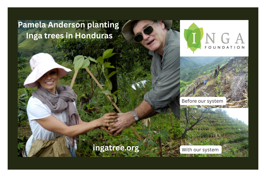 Climate Week 2025 NYC poster: We love that Pamela Anderson came to Honduras to plant Inga with us!